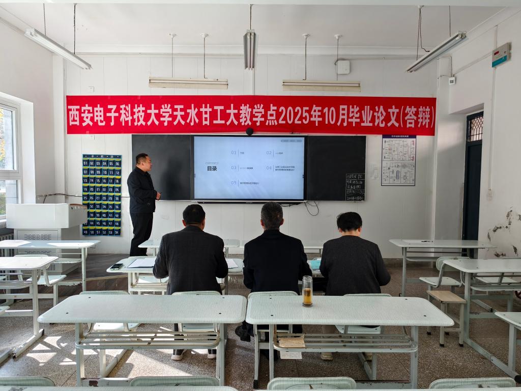 本科毕业设计答辩是全面完成毕业设计任务的关键环节,根据西安电子科技大学高等学历继续教育2025年10月本科毕业设计答辩工作的通知要求,10月25日在甘肃工业职业技术大学2教进行了成教学生本科答辩相关工作。