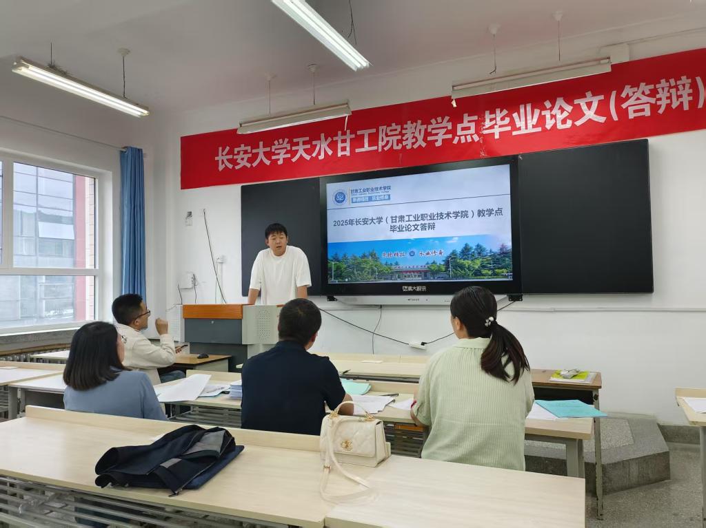 本科毕业设计答辩是全面完成毕业设计任务的关键环节,根据长安大学及西安建筑科技大学高等学历继续教育2025届(7月)本科毕业设计答辩工作的通知要求,6月3日在甘肃工业职业技术学院2教进行了成教学生本科答辩相关工作,继续教育学院全体人员及相关指导专家全程参与。