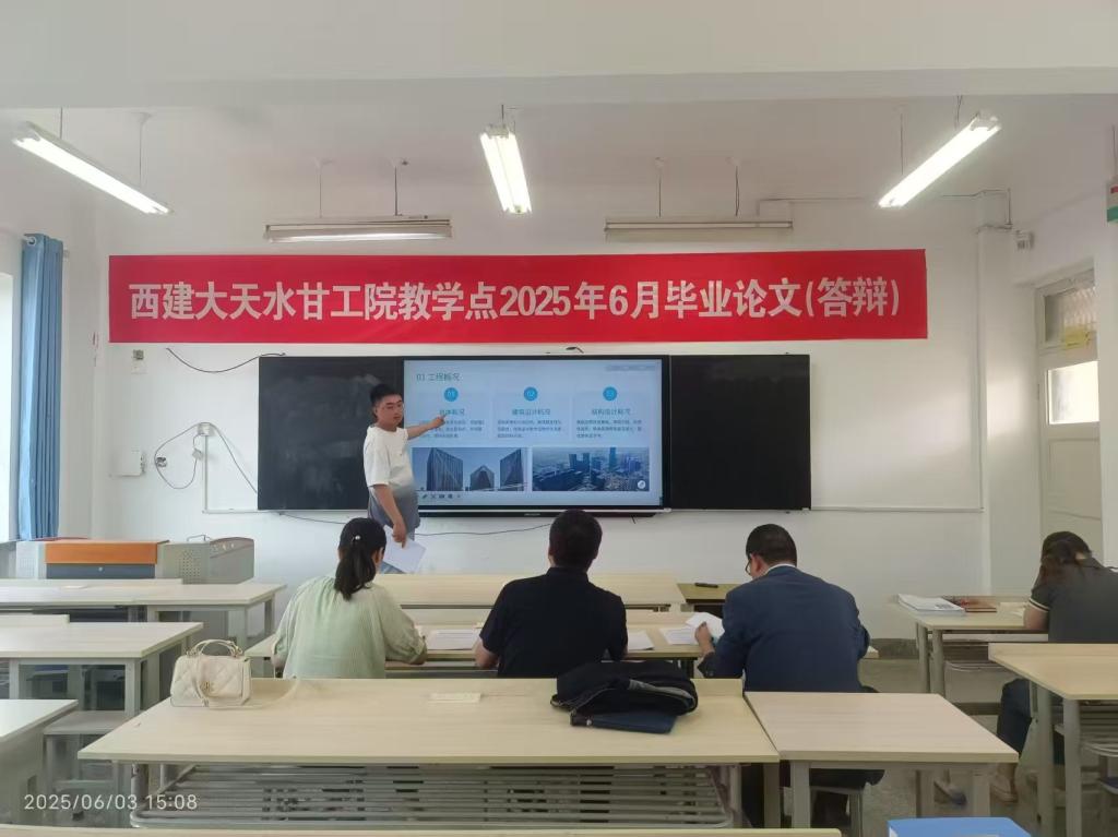 本科毕业设计答辩是全面完成毕业设计任务的关键环节,根据长安大学及西安建筑科技大学高等学历继续教育2025届(7月)本科毕业设计答辩工作的通知要求,6月3日在甘肃工业职业技术学院2教进行了成教学生本科答辩相关工作,继续教育学院全体人员及相关指导专家全程参与。